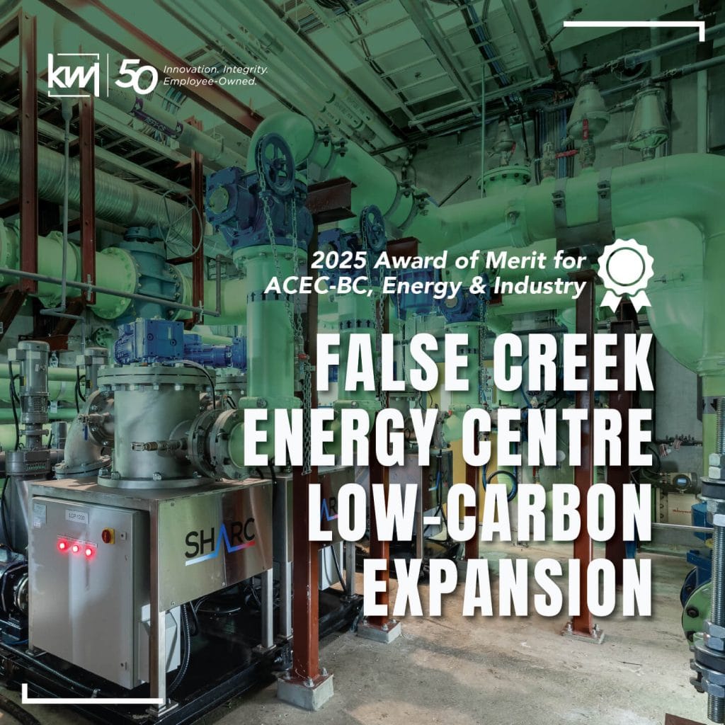 Kerr Wood Leidal Associates Ltd. (KWL) has been awarded the prestigious Award of Merit in the Energy & Industry category of the ACEC-BC Awards for Engineering Excellence for their groundbreaking work on expanding the False Creek Energy Centre—transforming it into the largest sewage heat recovery facility in North America. Through innovative system integration, spatial optimization, and custom technology development, KWL helped the City of Vancouver significantly increase low-carbon energy generation, positioning the city as a national leader in sustainable district energy.