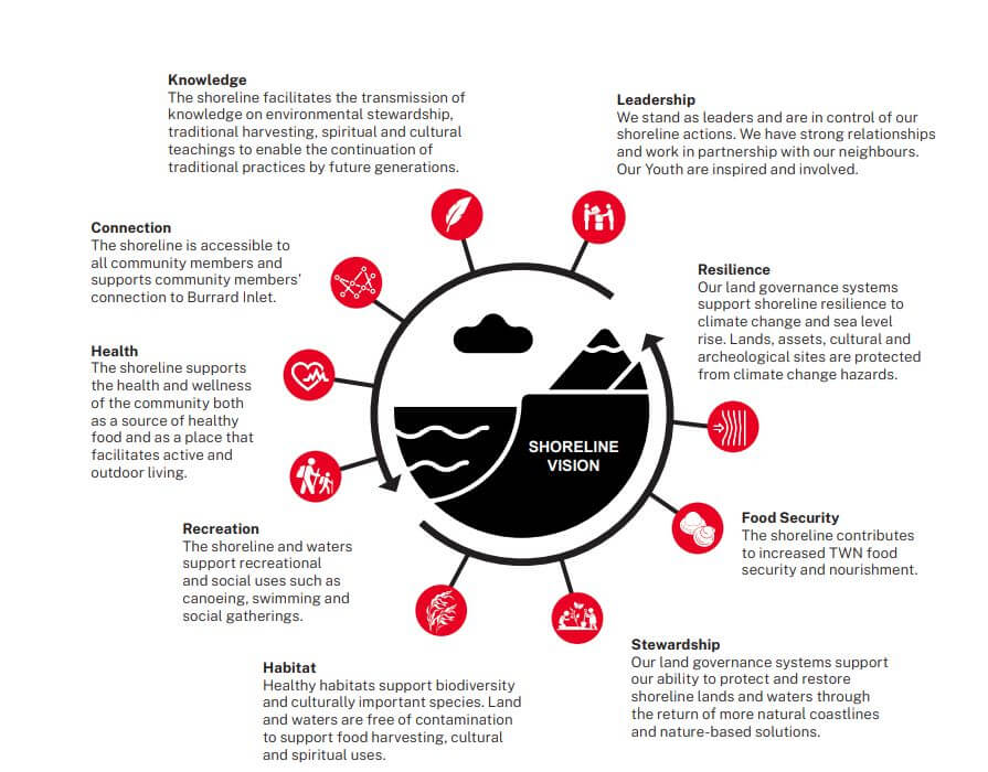 This project exemplifies a proactive, collaborative approach to planning for anticipated coastal erosion and sea level rise. It identifies opportunities to reshape the shoreline to build TWN community resilience to climate change and restore healthy marine shoreline habitats through Indigenous and nature-based solutions.