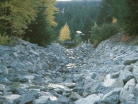 The Whistler Creek works provide excellent flood and debris flow protection to Whistler Creekside and other developments downstream with the added benefits of an attractively restored creek, improved fish habitat through silt interception and creek channel enhancements, and improved wildlife habitat through planting of fruit-bearing vegetation. In fact, the debris barriers reduced the downstream risk to such an extent that no large, and potentially unsightly, engineering works were required at Whistler Creek.